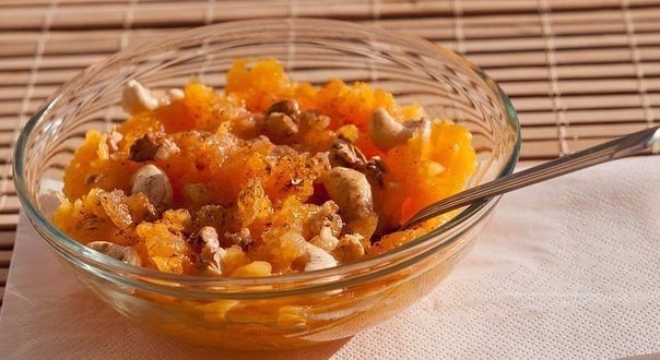 Все очень просто: натрите на крупной терке 100 г тыквенной мякоти, то же самое проделайте с очищенным от серединки сладким яблоком. Сложите продукты в салатник, полейте смесью домашнего несладкого йогурта и апельсинового сока (по вкусу), перемешайте. Этим блюдом полезно заменять ужин в течение недели.