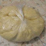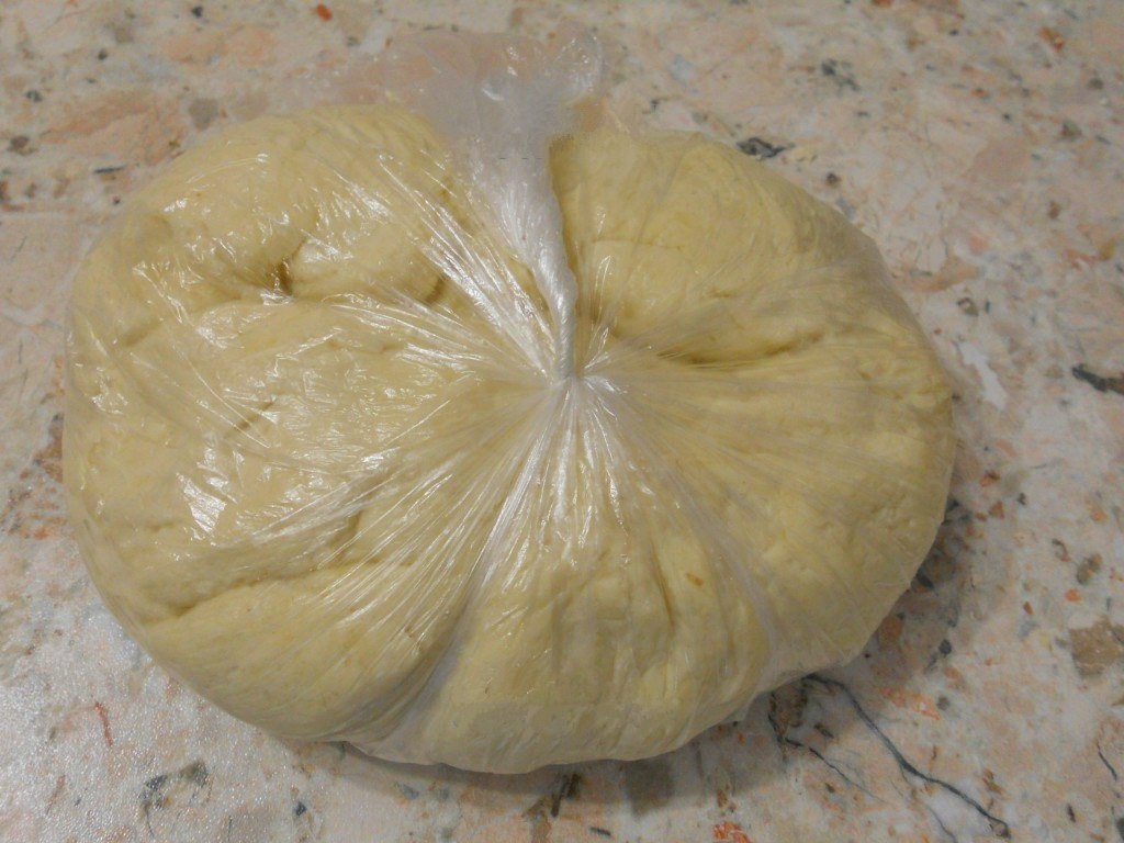 - Замесить гладкое, мягкое тесто (если понадобится — добавить еще муки или воды). Завернуть тесто в пищевую пленку или целлофановый пакет и поместить в холодильник на 1,5-2 часа.