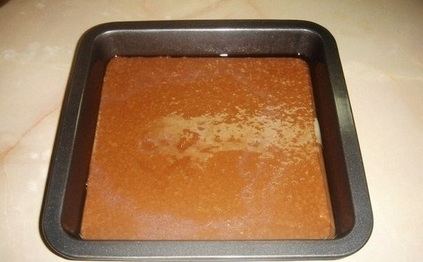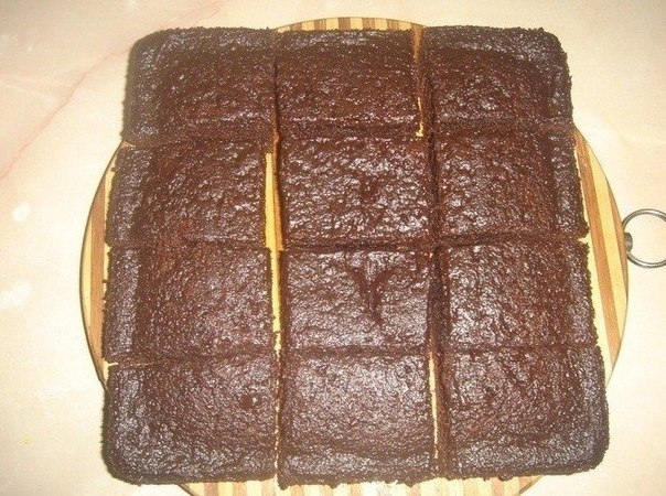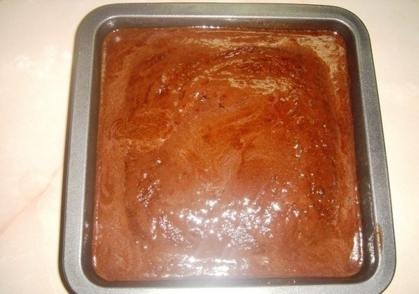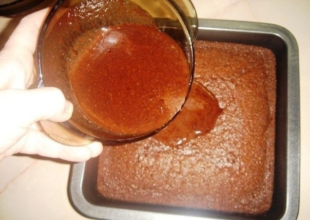 Готовый горячий пирог залила второй частью смеси.И оставила на ночь.Пирожные получились нежные, просто тают во рту.