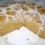 Оставить тесто мин на 20-30, что бы манка набухла. Перелить в чашу мультиварки и готовить 1 час в режиме «Выпечка». фото 1,2 манник медовый с грушей, фото 3 манник с виноградом и бананом, фото 4,5,6 манник с халвой и грушей. Украшено сверху сгущёнкой.