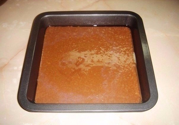 Горячий пирог залить второй частью смеси прямо в форме. Дать остыть и нарезать на порционные кусочки.
