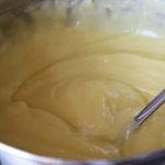 Для приготовления крема в отдельной кастрюльке вскипятить молоко. В миске взбить яйцо с сахаром и мукой, в полученную массу влить горячее молоко и отправить на огонь. При постоянном помешивании довести крем до кипения и нужной консистенции.