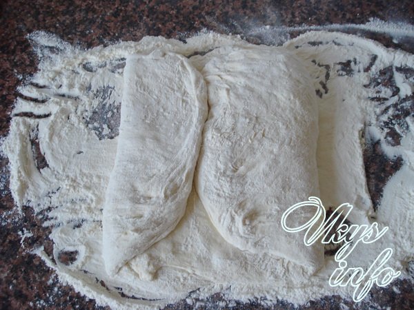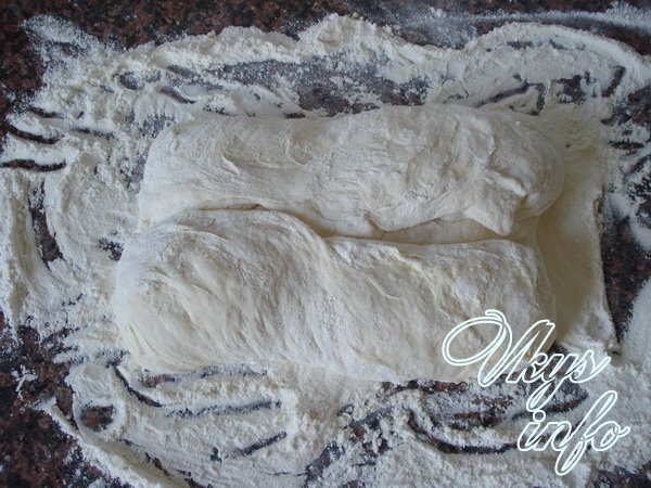 Режем тесто на 2-3 части – это наши будущие чиабатты.