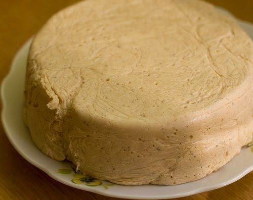 3) Муку добавляем в пасту из семян и перемешиваем. Можно еще раз провернуть массу через мясорубку, чтобы будущая халва была воздушной. Добавляем пасту в сироп, размешиваем и выкладываем в специальную форму (можно использовать масленку с закрывающейся крышкой). Ставим халву в холодильник застывать, сверху кладем пресс.