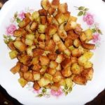 нарезаем ее кубиками и обжариваем с солью и луком на масле