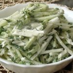 Ингредиенты: сельдерей (4 стебля), капуста (пол килограмма), огурец (3 штуки), лук (2 головки), растительное масло, сок половины лимона, петрушка или укроп.