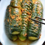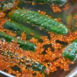 8. В кастрюле вскипятите воду, вылейте туда соевый соус, посолите — 2 ст. л, добавьте сахар 3 прессов. кубика и уксус (рисовый уксус). Залейте огурцы рассолом. (Соль и сахар можете добавлять по своему вкусу, если любите соленые огурцы, добавьте больше соли) Как только рассол остынет, огурцы можно кушать. Но чем дольше они стоят, тем вкуснее.