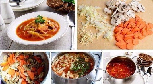 3. Добавить капусту, нарезанный кабачок и остальные ингредиенты кроме соли и перца.